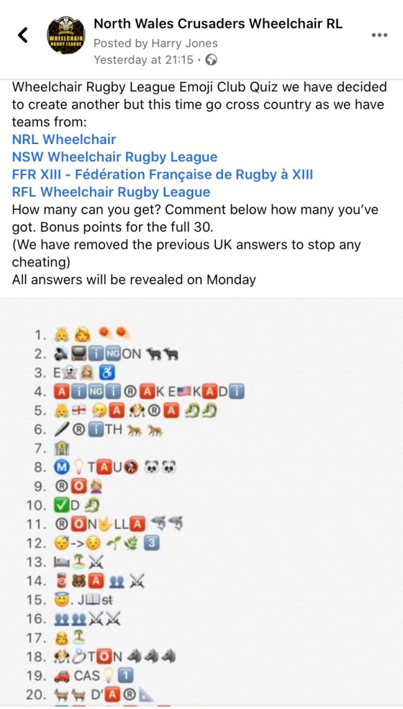 “I expect some of us will be out of shape!” Daniel joked. “When the season is over, many of us still play wheelchair 7s to keep us going, so this will be the longest some of us have gone without seeing each other”.